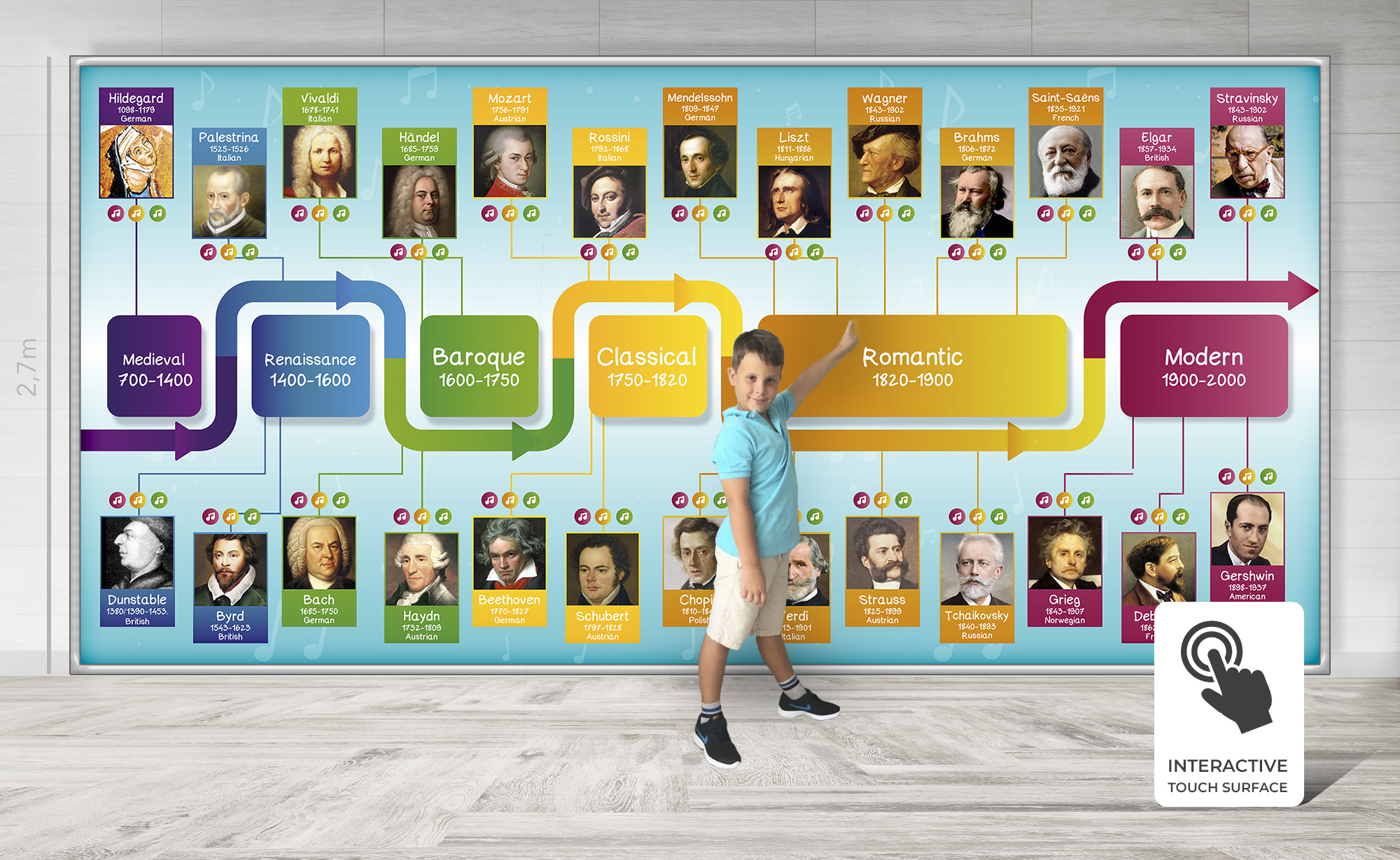 Spectacular design, Visual effects, Interactive music and sound effects, Touch control